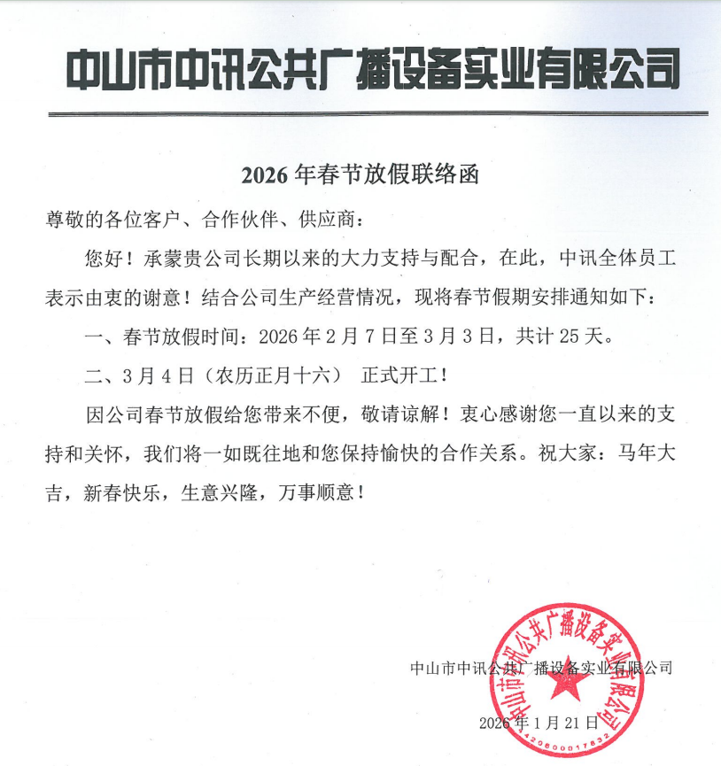 • 中讯2026年春节放假通知